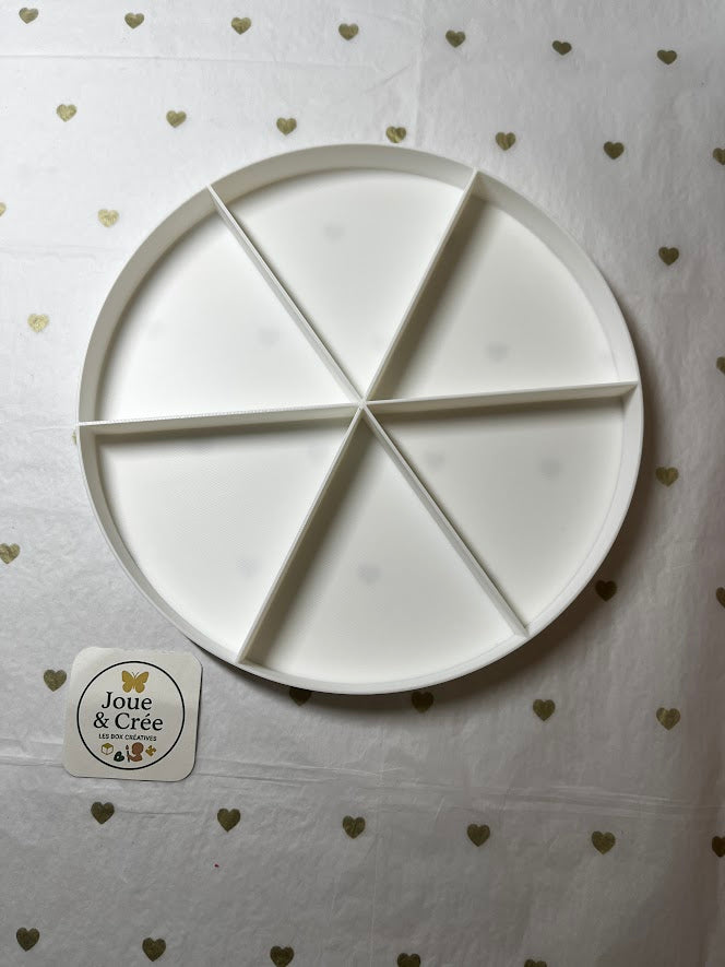 Je vous propose un bac de tri rond à 6 compartiments, idéal pour organiser, trier ou créer des mini-mondes.