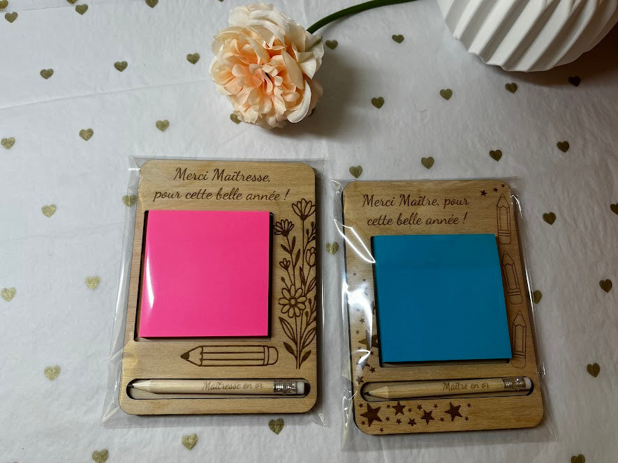 Bloc-notes en bois personnalisé + crayon gravé : “Notes magiques”