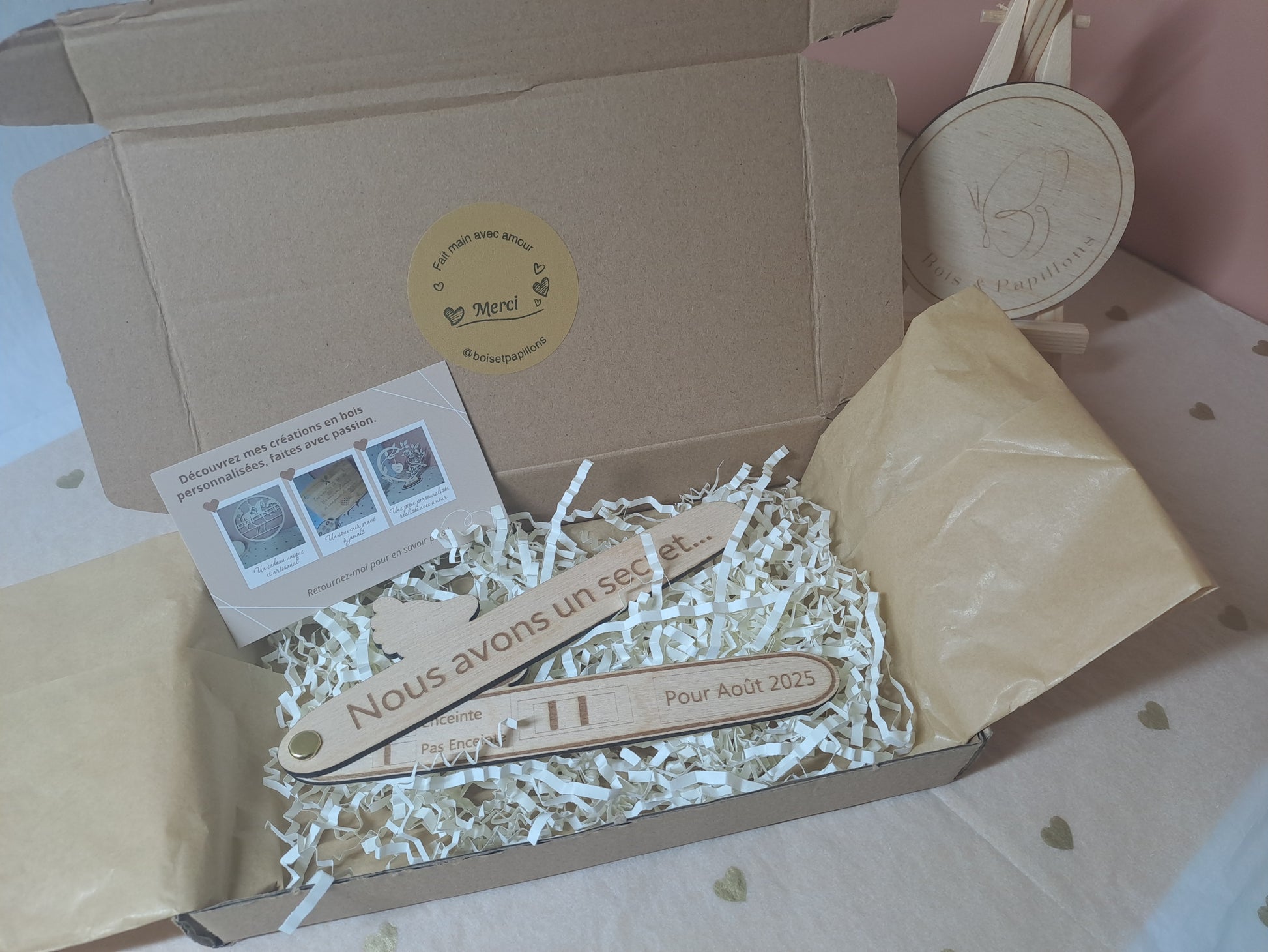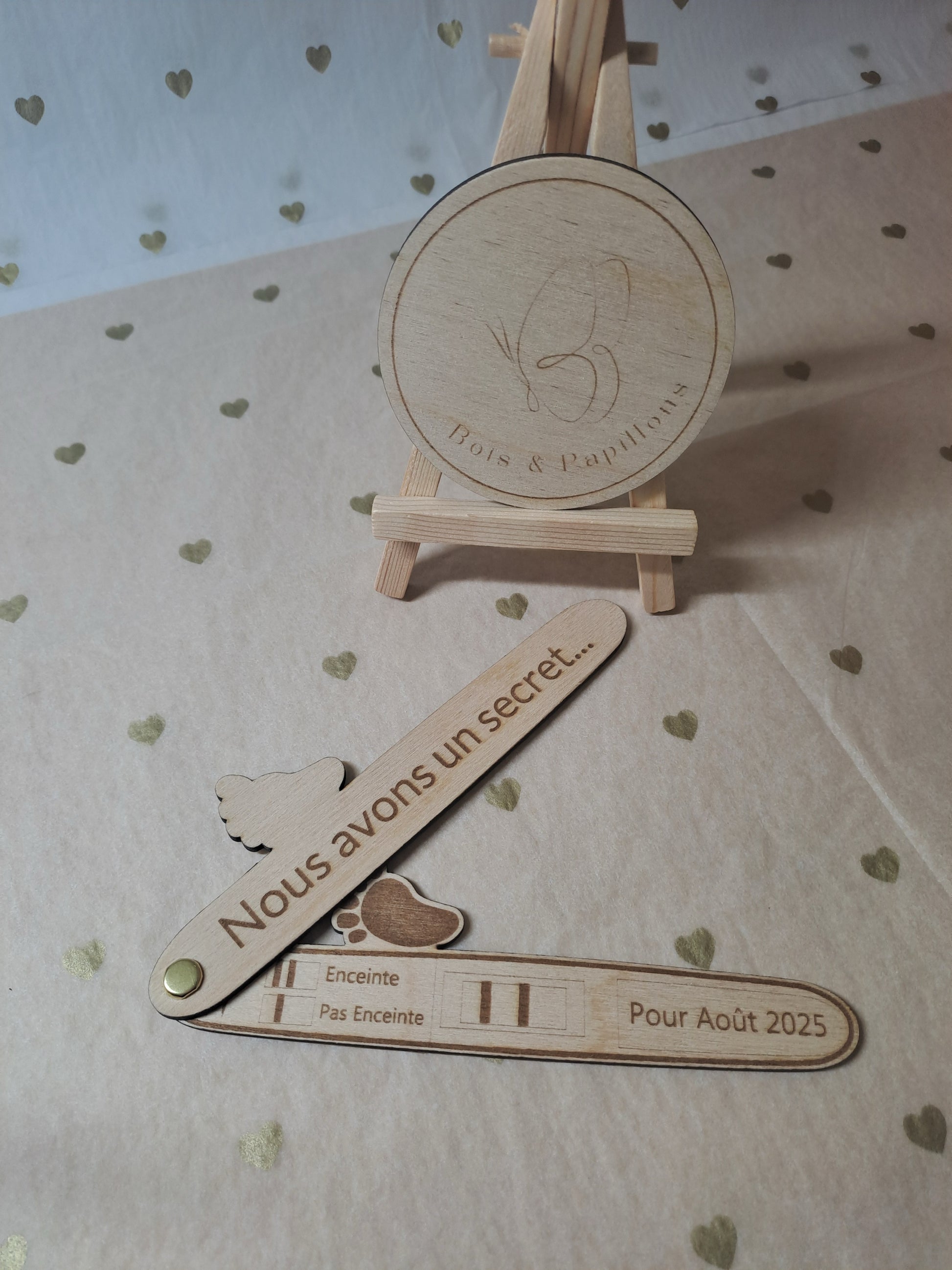 Test de grossesse en bois personnalisé - Annonce grossesse